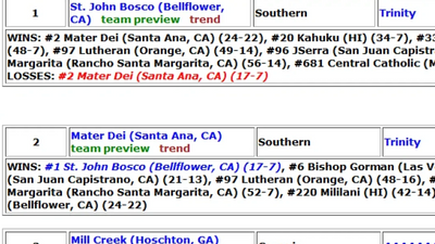 Inconsistencies like this abound throughout the different seasons. I recall one publication declaring during Concord (CA) De La Salle's 151-game winning streak from 1992-2003, that until somebody beats them, they are the #1 team.